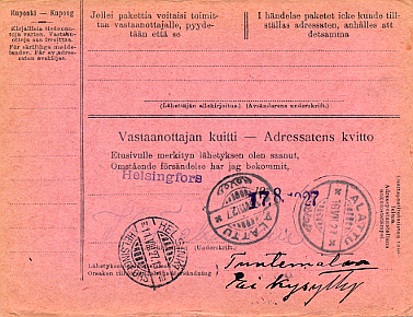 16.07.1927 Helsinki Tavavarasto POHJOLA -> 16.07.1927 Alattu Heiman