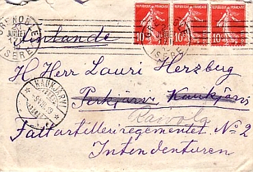 | K13.019: 21.7.1919 Grenoble, Fr 09.08.1919 Kaukjärvi Lauri Herzberg (vh) | |