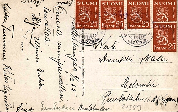 | K62.079: pp Kolttaköngäs 03.12.1935 Salmijärvi Neiti Annikki Mäki Helsinki | |