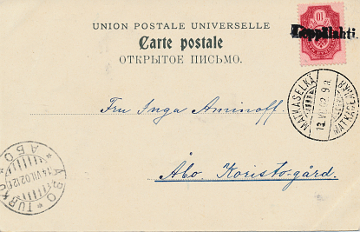| K22.051: pp Leppälahti. 13.07.1902 Matkaselkä 14.07.1902 Sortavala Inga Aminoff | |