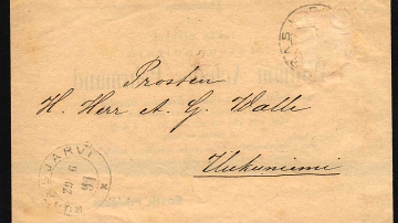| K68.023: Surukuori 29.06.1891 Pudasjärvi 01.07.1891 Uguniemi A. G. Walle (tuloleima) | |