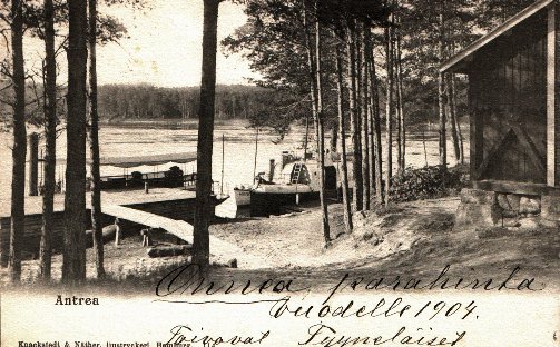 Postikortti, viivoituksella Antrea, laivaranta pp Helylä (He4,R4) (1903..1904) Sortavala Herra Alfred Siren perh. Sortavala, Kiviniemi t. Knackstedt & Näther, ljustryckeri, Hamburg