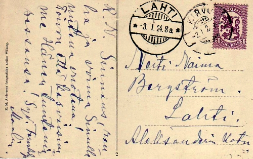 X719.02 Postikortti 02.01.1924 Kirvu 03.01.1924 Lahti Naina Bergström (vh)