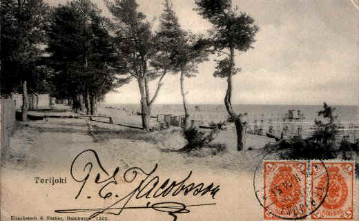 Postikortti Terijoen rantaa 26.02.1904 Terijoki (He6a,R1) T.E.Jacobsson 29.04.1904 Szent Endre Monsieur Eugen Dumtsa (Hongrie) t. Knackstedt & Näther, Hamburg