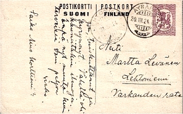 K39.004: 20.03.1924 Äyräpää 21.03.1924 Lehtoniemi Varkauden rata Martta Levänen |
