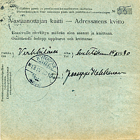 K39.006: 12.04.1930 Lappeenranta 12.04.1930 Lappeenranta Kontr Jooseppi Kekkonen Vuoksela 13.04.1930 Äyräpää |