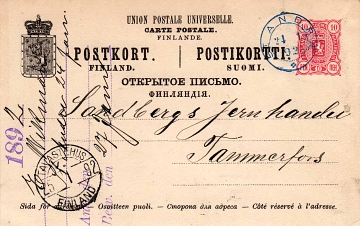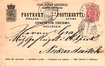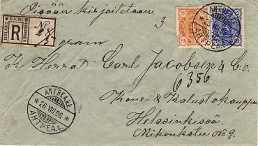 K01.008: 26.08.1896 Antrea k.k. 27.08.1896 Helsinki Carl Jacobsen & Co |
