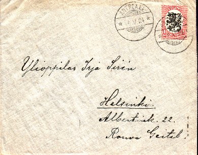 K01.010: 06.05.1924 Antrea k.k. -> 07.05.1924 Helsinki Ylioppilas Irja Siren Helsinki |