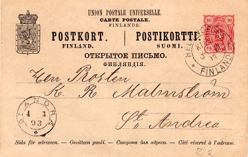 K01.026: 03.03.1893 Helsingfors Weilin & Göös 04.03.1893 St Andreae Herr Prosten K. R. Malmström St Andrea |
