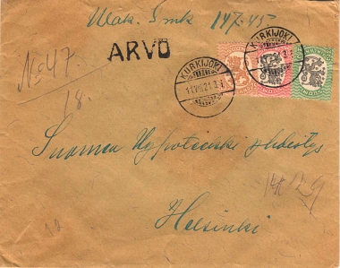 vakuutetulla kuorella 11.8.1921 Helsinkiin. |