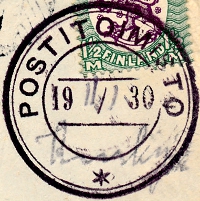 VARALEIMA "Postitoimisto-postantstalt" | He: 07-10.01.1930 (Helkiö) |