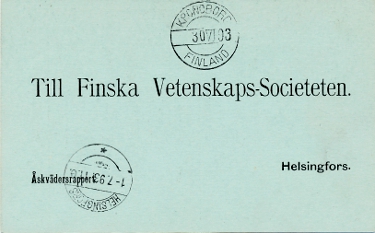 K14.059: 30.06.1893 Kronoborg 07.06.1893 Helsinki Finska Vtenskap-Societen |