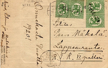 K10.052: pp Tietävälä 28.12.1919 Kirvu Sotilas Paavo Mäkelä Lappeenranta, R.T.R.VI patteri |