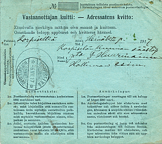 K41.020: 04.07.1917 Helsinki 06.07.1917 Korpiselkä Korpiselän Säästöpankki |