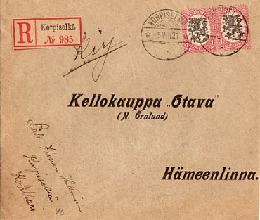 K41.021: 05.08.1921 Korpiselkä Kellokauppa Otava Hämeenlinna (pt) |