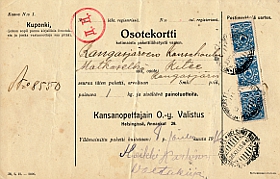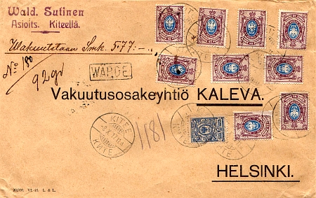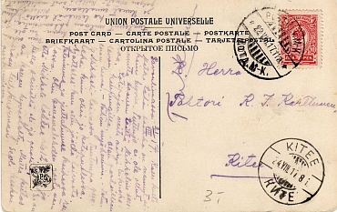 K62.031: 22.08.1917 Postilj.v. M-K (01.10.1906-01.04.1917 Mikkeli-Kouvola) 24.08.1917 Kitee Herra Tohtori R.J.Karttunen Kitee |