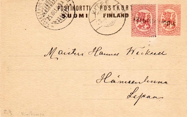 K62.030: pp Niinikumpu 23.08.1918 Kitee 25.08.1918 Hämeenlinna (- vuosil. '1' nurin) |