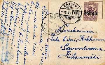 K62.087: pp Närsäkkälä 13.05.1925 Kaalamo 14.05.1925 Savonlinna Iida Esteri Kokkonen |