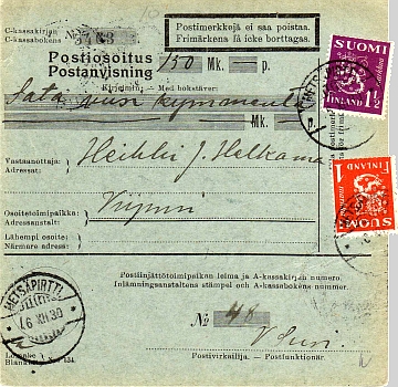 K18.004: 16.12.1930 Metsäpirtti (pvm korj.) 17.12.1930 Viipuri Heikki J.Helkama |