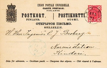 kommentti ylemmästä ehiöstä: ". . . Ilokseni löysin joukosta erään esivanhempani. N16 Nurmi-sivulle on skannattu ehiö, joka lähetetty "C.J.Basberg:ille". Tätäkin sukunimeä löytyy, mutta kyseessä on käsitykseni mukaan insinööri Carl Johan Broberg, joka esim. Viipurin maaseurakunnan 1887-1896 rippikirjojen perusteella asui Kintereellä (-91 kulkeneessa ehiössä Kinderi), ja joka muutti Viipurin msrk:sta 1893 Kemiönsaarelle. Kyseessä on isänisäni äidin isä." (lähde: 22.01.2009 Peter Sandelin Helsinki) |