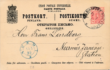 | K44.043: 15.01.1890 Helsingfors Poststation 15.01.1890 Nurmi Frans Lindberg |