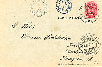 K53.003: 03.08.1901 Nuijamaa 03.08.1901 Viipuri 06.08.1901 Stockholm Einar Edström | |