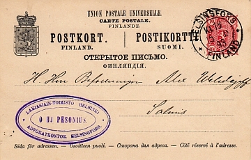 K25.040: 15.09.1893 Helsinki - Finland 18.09.1893 Salmis Alex Weledjeff (tuloleima) |