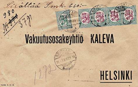 K26.008: 07.12.1929 Seiskari 09.12.1929 Helsinki Vakuutusyhtiö Kaleva |