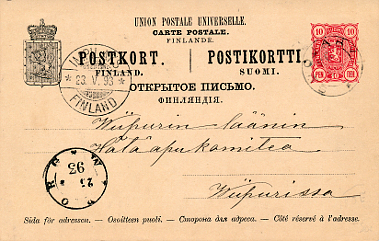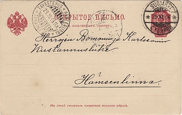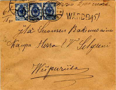 K30.054: 25.11.1906 Suojärvi 27.11.1906 Wärtsilä 28.11.1906 Helsinki Romanin ja Karlssonin Kustannusliike |