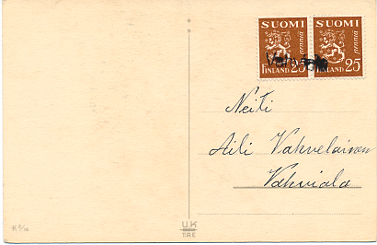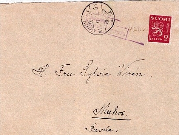 K44.033: pp Vahviala 17.02.1940 Nurmi Vp.L H. Fru Sylvia Wiren Muhos, Suvela (pt) |