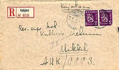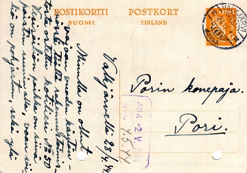 K35.014: 28.04.1944 Valkjärvi 02.05.1944 (saapunut leima) Porin Konepaja Pori |