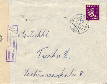 K35.028: 10.12.1941 Valkjärvi 13.12.1941 Turku Apteekki Turku 3 | |