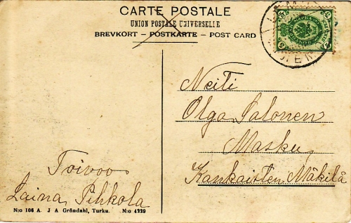 X718.02 Postikortti . . . Lemi . . . Masku Olga Salonen (vh)