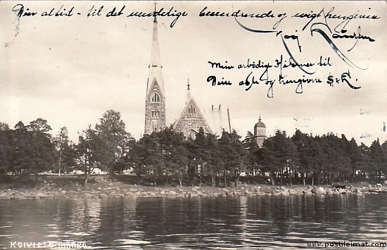 Valokuva - Postikortti Koivisto - Kirkko Björkö 20.Aug. 1924 Fröken S. R. P. P. S. Noschis Helsinki t. ? (vh)