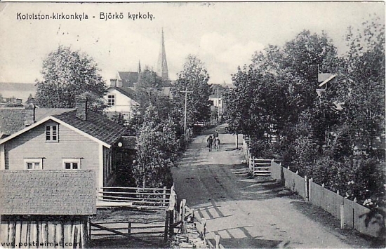 Postikortti Koivisto - Björkö kyrkoly 07.05.1910 Helsinki Fröken Elin Holmberg Kristinestad t. ? (vh)
