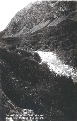 Postikortti, viivoituksella Petsamo - Sielukkajoki Emil Makkonen, Helsinki t. Rautatiekirjakauppa no. 570 va. ?