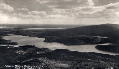 Postikortti, viivoituksella Petsamo. Näköala Kaskamotunturilta kulkematon t. Suomen Matkailijayhdistys