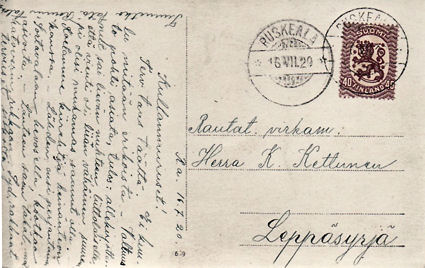 X635.01 Postikortti 15.07.1920 Ruskeala K. Kettunen Leppäsyrjä (vh)
