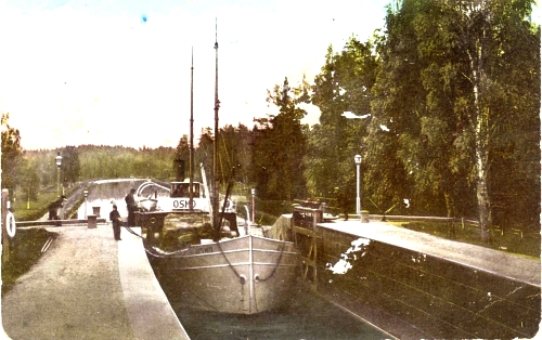 Postikortti, viivoituksella Saimaan kanava - Särkijärvi 19.--.-- Trånsund * Uuraa Eeli Pehtti Viipuri t. E. G. S. i. S No. 19
