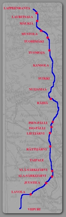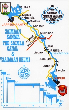 Lauritsalasta Viipurin Linnansalmeen 58,25 km - kaivettua kanavaa 33,60 km, järviväyliä 24,55 km - Saimaan ja merenpinnan korkeusero 76 m - sulkukammioita 26 kpl, keskitettynä 15 ryhmään (lähde Vanha ja Uusi Saimaan kanava, Pertti Koistinen) |