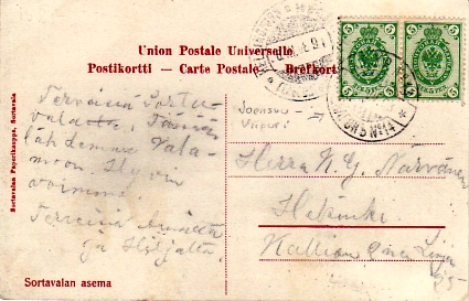 X668.02 Postikortti 06.03.1908 P.vaunu No.14 K. J. Närvänen Helsinki (vh)