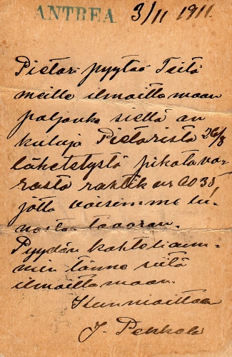 (0101.02) Venäläinen Postikortti (03.11.1911) al ANTREA (0101.03) |