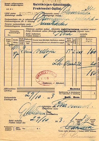 rautatieleima, 35mm, m pvm: - 29.10.1913 - |