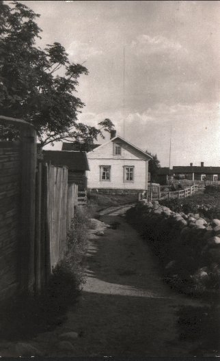 SA151a: Seiskari. t. Copyright 1939 Seiskari Seura, Seiskari k. K. Kallio "Lounatkylää, taustalla Simon-Annin eli Yrjö Hotasen talo"