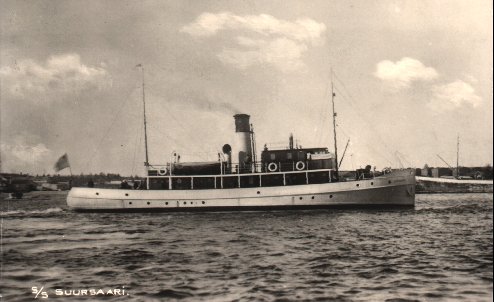 Postikortti kulkematon s/s SUURSAARI 1927 WARKAUS 29,5 x 7,2 x 3,6m 600hv Luovutettiin vuonna 1945 sotakorvauksena Neuvostoliitolle t: Rautatiekirjakauppa Oy 483