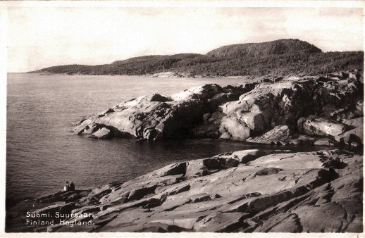 Postikortti Suursaari - Hogland "Länsirantaa, Haukkavuori ja Pohjoiskorkia" (03.03.1929 Hyvinkäällä) Neiti ... Ahjo Helsinki k. Rautatiekirjakauppa