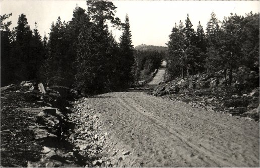 Pohjoiskorkialle vievä tie, tornit näkyvät horisontissa