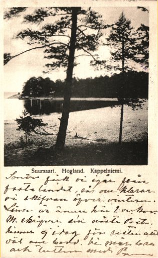 Postikortti 03.12.1915 Suursaari 04.12.1915 Kotka 05.12.1915 Helsinki Fröken . . . Röman - venäl. tark.leima t. Kotkan Kirjakauppa Oy
