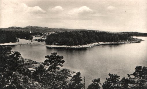 Postikortti Suursaari - Hogland Kappellahden uimaranta. Oikealla Kappelniemi t. Suomen Matkailijayhdistys