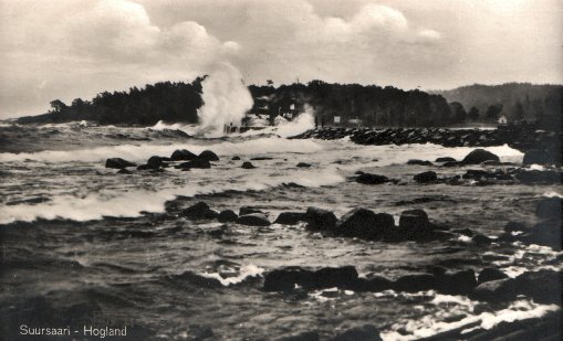 Postikortti Suursaari. Myrsky aallonmurtajalla k. Suomen Matkailijayhdistys